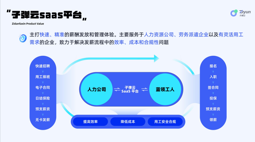 除此之外,子弹云(人力云)作为一体化劳务SaaS平台,还将雇主保障与智能考勤、电子合同、无卡发薪等核心功能深度融合,覆盖用工全场景,实现“一站式”数字化管理,不仅帮劳务公司筑牢风险防线,更能提升用工管理效率,真正实现“降本、增效、控险”的经营目标,这也是普通SaaS平台和单一保险方案无法比拟的核心优势。